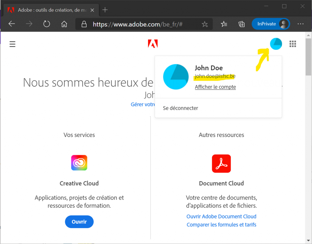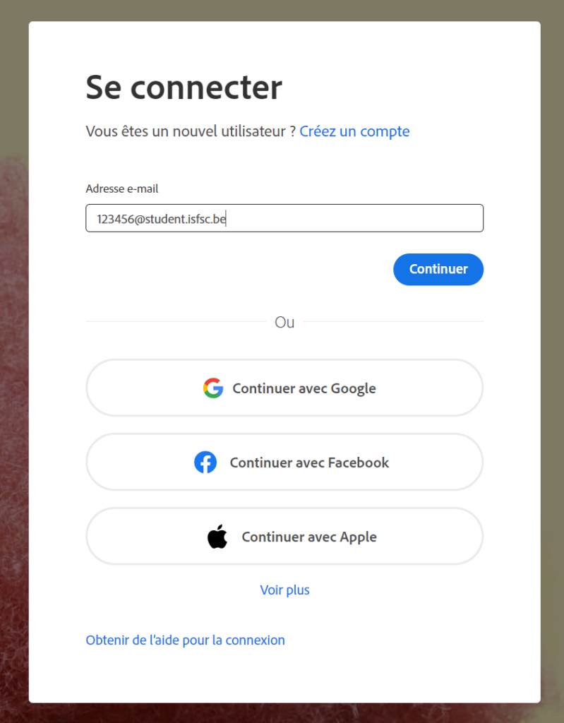 Si vous aviez déjà un compte ADOBE scolaire ou personnel lié à votre appareil (PC ou mobile) vous devez d’abord vous déconnecter !