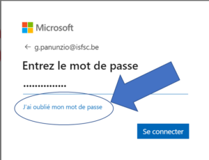 Rendez-vous sur le site office.com et cliquez sur « J’ai oublié mon mot de passe ». ATTENTION : Lorsque vous modifié le mot de passe sur Office.com, cela implique que vous devrez utiliser ce nouveau mot de passe pour tous les outils Office et Adobe, pour vous connecter au WiFi ISFSC et pour utiliser les PC mis à votre disposition à l’ISFSC.