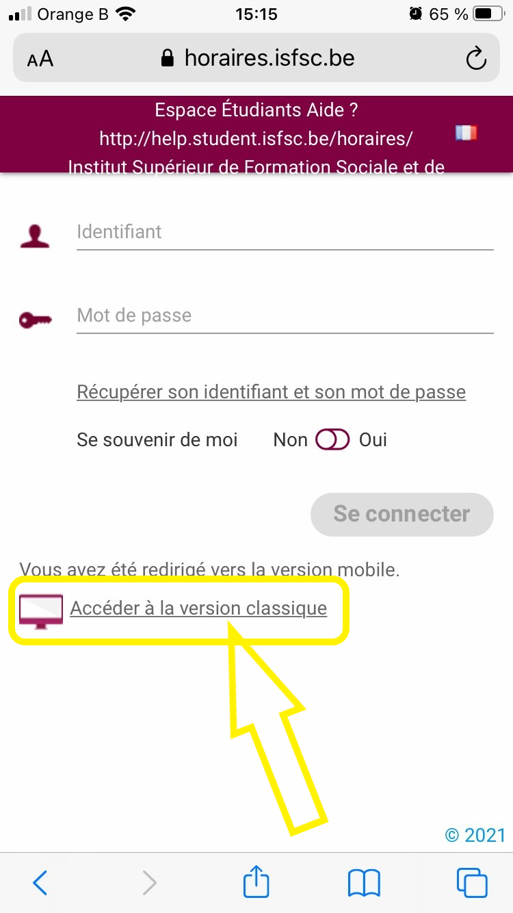 Votre identifiant d’accès est identique à celui que vous utilisez pour accéder à votre adresse électronique @student.isfsc.be :